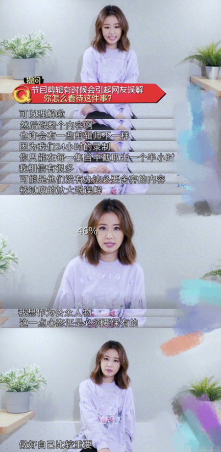 對于,綜藝節(jié)目剪輯有時會引起誤解,林心如表示有一些問題被放大跟誤解無法避免,作為公眾人物要有一個好的心態(tài)。