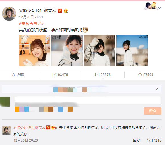 火箭少女101成員賴美云是否會參加藝考引發熱議