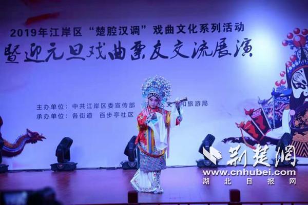 京劇、楚劇、黃梅戲、戲曲聯(lián)唱……當(dāng)天,漢口歷史文化展示中心三樓的“楚腔漢調(diào)”戲苑熱鬧非凡,戲迷票友們從各個(gè)街道聚到這里,你方唱罷我登場(chǎng),優(yōu)美的唱段、動(dòng)人的表演,不時(shí)博得滿堂彩。