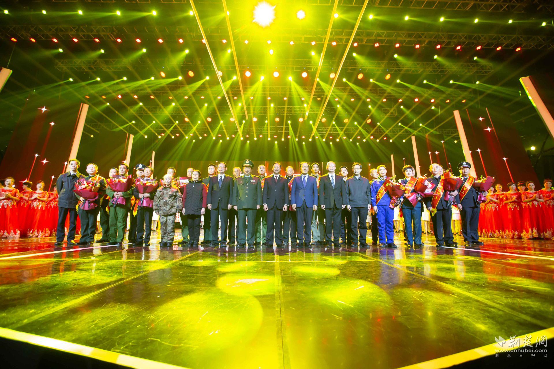 20名“荊楚楷模·最美退役軍人”與頒獎的領導嘉賓合影。高帆 攝。