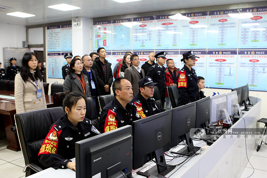 媒體采訪團在廣西鹿州監獄指揮中心觀看“一分鐘處置”演練場景。廣西新聞網記者鄧昶 攝