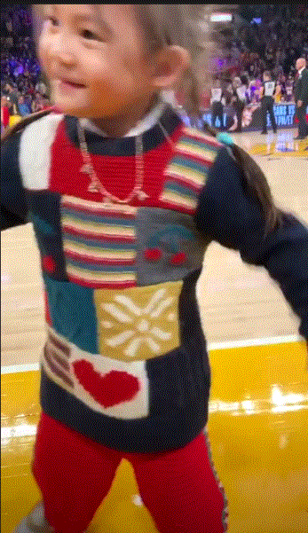 26日晚,陳冠希、秦舒培帶女兒現(xiàn)身斯臺普斯觀看NBA比賽,陳冠希也曬出女兒的照片,兩歲的Alaia眉目清秀,門牙還缺了一顆扎著小辮兒在球場蹦蹦跳跳鬼馬可愛,一家人和Kevin Hart合照Alaia超有范兒。