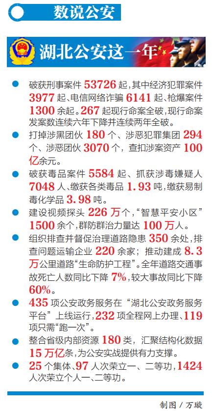 匆匆而過的2019年,湖北公安機關(guān)“不忘初心、牢記使命”,勇立潮頭、迎難而上,經(jīng)受住了一場場冰與火的考驗。全省公安建設(shè)大膽改革,服務(wù)群眾推陳出新,重大安保路暢人安,偵查破案碩果累累……6.3萬鄂警鐵軍用負重前行、忠誠如一的擔(dān)當(dāng)奉獻,換來平安湖北鏗鏘前行。