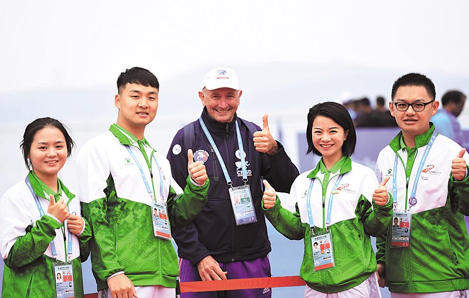 軍運會志愿者的熱情周到服務受到各國運動員和教練員的稱贊。 (湖北日報全媒記者 田悅 攝)