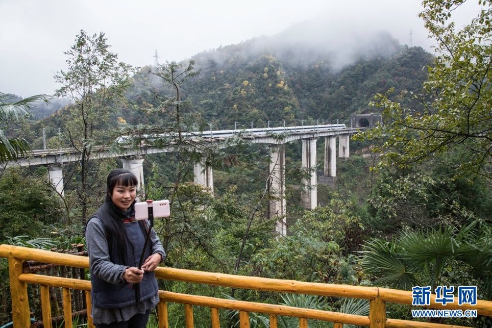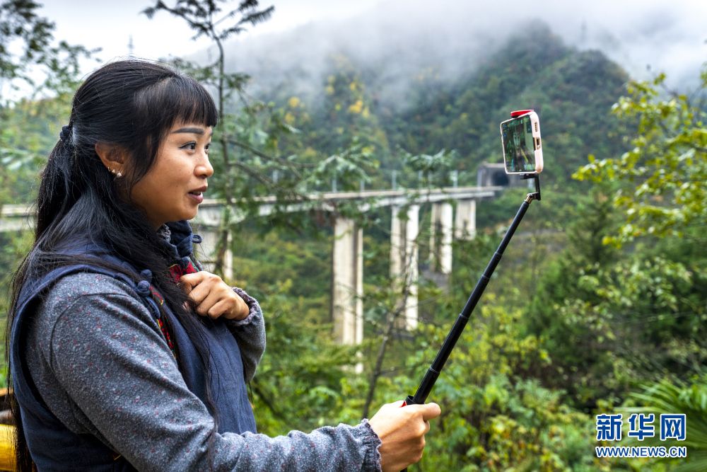 張維珍通過(guò)直播平臺(tái)熱情地和網(wǎng)友互動(dòng)時(shí),一輛動(dòng)車從身后飛奔而來(lái),她的質(zhì)樸和善良同大山的風(fēng)景,構(gòu)成了一幅別具特色的“鄉(xiāng)村畫(huà)”。新華網(wǎng)發(fā) 康林?jǐn)z