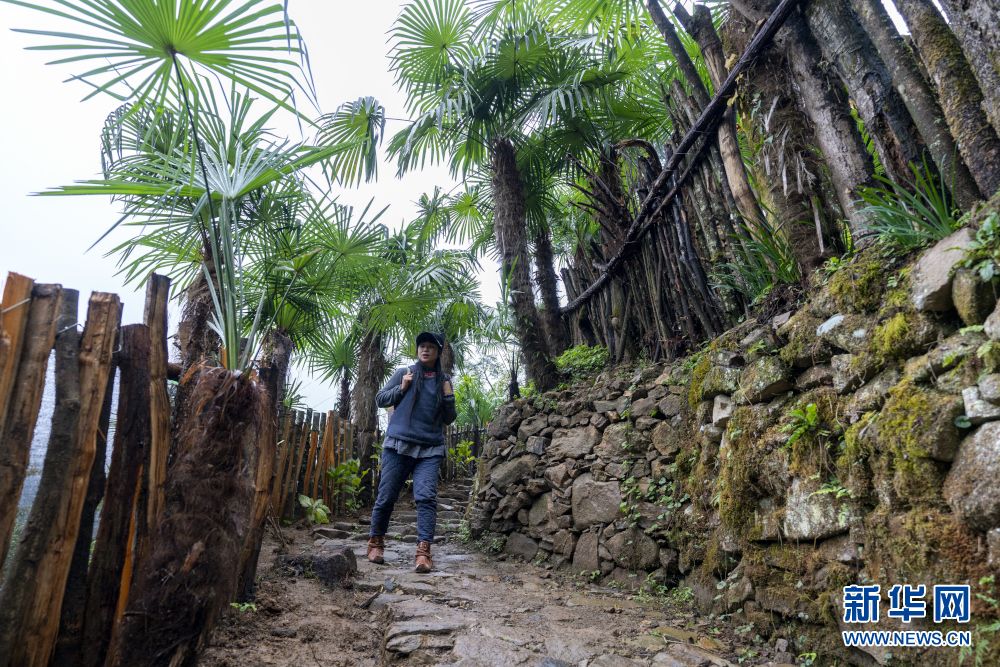 張維珍和弟弟在石階小路旁種植繡球樹(shù)。她說(shuō):“弟弟是打造棕林寨世外桃源的園藝師,不到兩年,他們要將寨子里種滿花卉和果樹(shù)。”新華網(wǎng)發(fā) 康林?jǐn)z