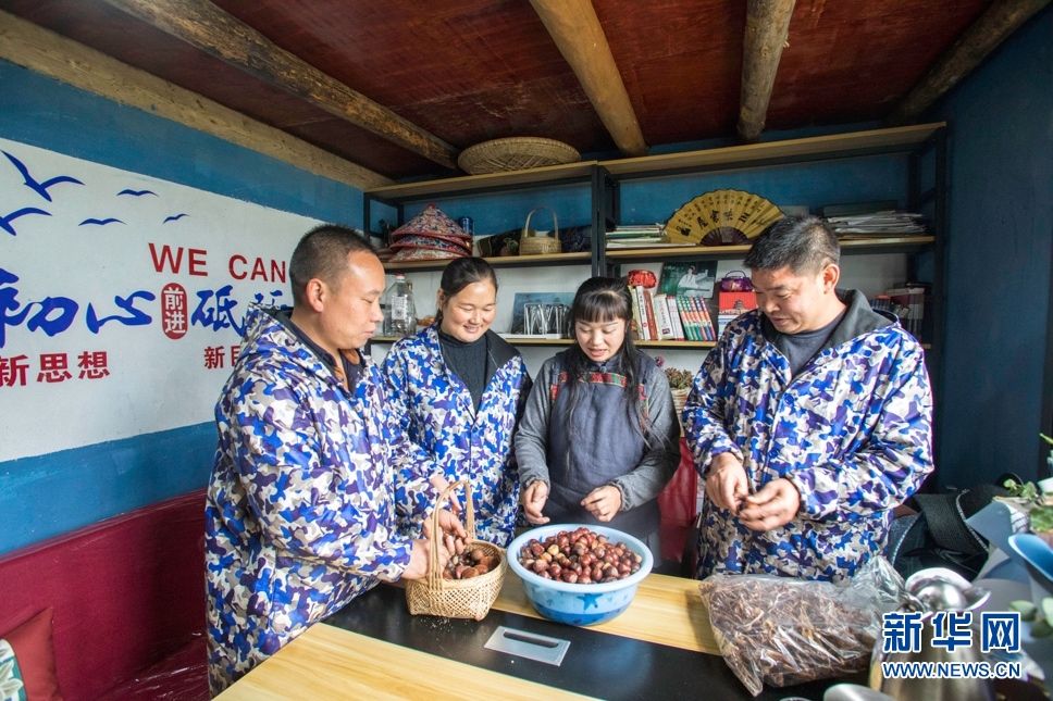 在家人的支持下,張維珍的寨子影響越來(lái)越廣。這是她在和家人一起挑選野生板栗。新華網(wǎng)發(fā) 康林?jǐn)z