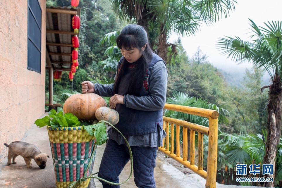張維珍剛從山上采摘回來(lái)南瓜和白菜,小狗狗便圍了上來(lái)。她說(shuō),寨中食材自給自足,環(huán)保、無(wú)公害,這就是“神仙”過(guò)的日子哩!新華網(wǎng)發(fā) 康林?jǐn)z