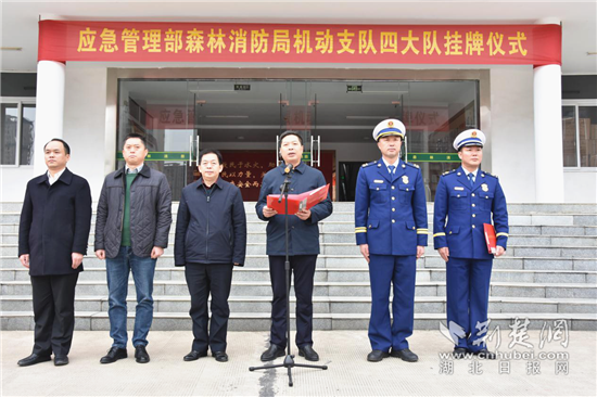 據悉,森林消防局機動支隊四大隊是改革轉制后駐守在湖北的一支國家綜合應急救援力量。該大隊自2008年駐防湖北以來,先后圓滿完成滅火作戰任務40余次,多次在神農架、武當山等地靠前駐防,在湖北森林滅火救援發揮了重要作用。掛牌成立后,將繼續發揮在森林滅火救援方面的專業優勢,在應急隊伍培訓、綜合救援演練、防災減災建設等方面,推進全省森林防滅火能力建設提檔升級。