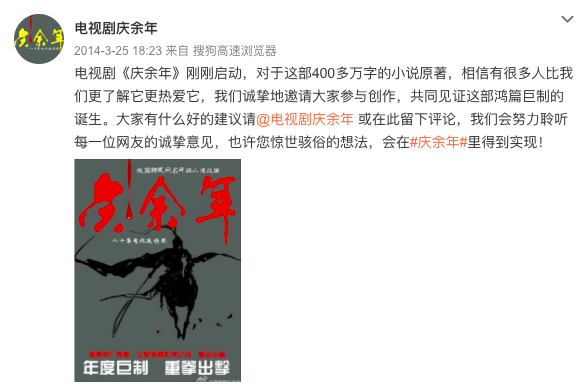 除了宣布制作公司外,該官微還發布了多條微博和網友討論《慶余年》的改編,包括人物合并、故事背景設定等等。