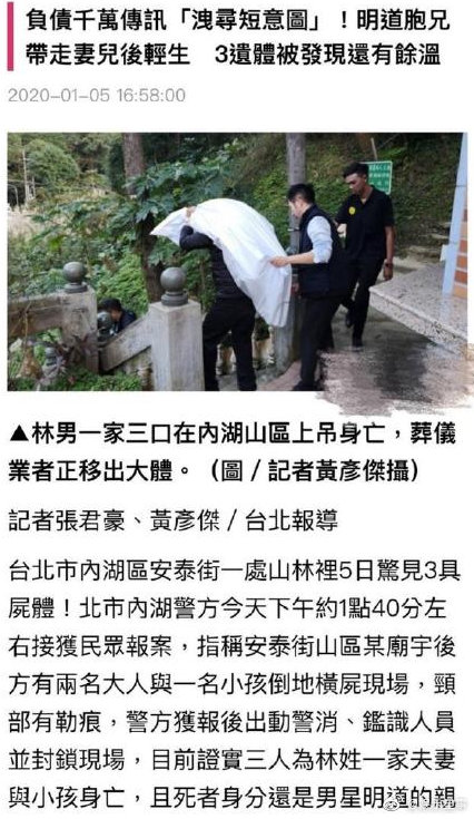 5日,臺北市發現一家三口尸體,被指是明道哥哥一家。