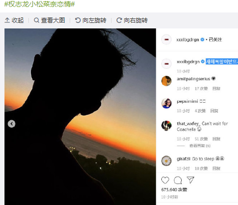 6日,權志龍ins更新一組近照,并配文:“新年快樂!”隨后有網友發現疑似小松菜奈ins曬出一男一女看日出背景照,并艾特權志龍:“新年快樂!”疑似兩人公開戀情。