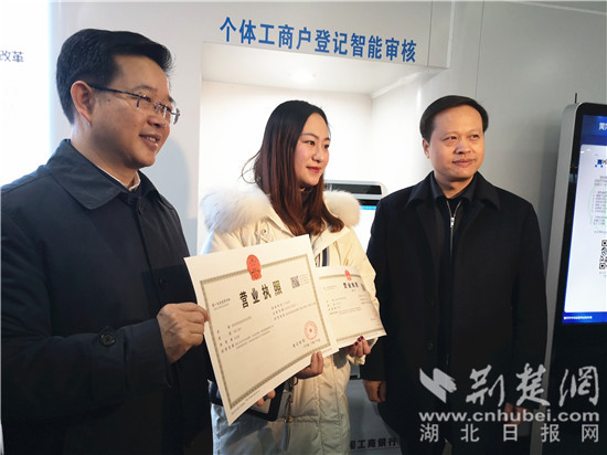 荊楚網(wǎng)客戶端—荊楚網(wǎng)消息(記者張茜 通訊員鄒明、郭姍姍)“只需提交身份證,按照電腦提示填寫相關(guān)信息,5分多鐘就能拿到營業(yè)執(zhí)照,特別省事兒!”1月6日一大早,黃岡市個體工商戶許文婷便通過湖北市場監(jiān)管“智慧辦”平臺,自助領(lǐng)取了全省第一份智能審批平臺發(fā)出的個體工商戶營業(yè)執(zhí)照。