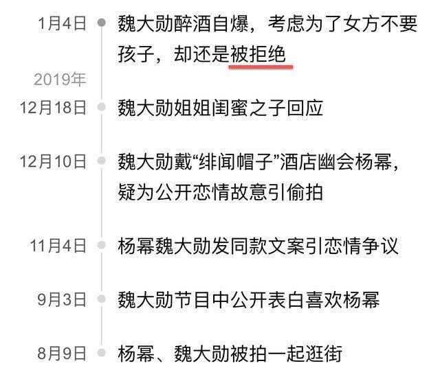 更有魏大勛的粉絲爆料,他本人在1月4號的活動上承認自己是單身。而在之前他錄制的某綜藝節目上,也疑似透露出自己“遭到拒絕”的信息。