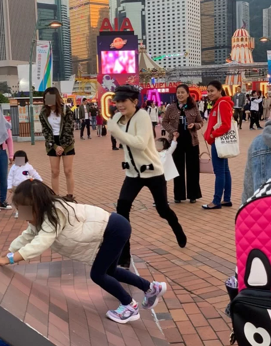 雖然方媛剛生完二胎沒多久,不過身材卻保持的非常好,而且十分有活力,跑起來連氣都不帶喘的,看來在產后下足了功夫去減肥鍛煉維持身材。
