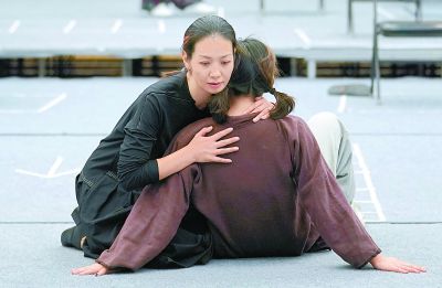 盧芳在話劇《二月》中的排練照。記者 方非攝