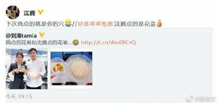 8日,劉濤在社交平臺曬出與沈騰的同框照,并發文:“我點的花卷和沈騰點的花卷。”照片中,兩人各自拿著一盒花卷,劉濤手中是三個小小的花卷,而沈騰手中的花卷雖然只有一個,個頭卻比三個小花卷加起來還要大。有網友在評論中調侃道:“沈騰點的是花盆”,結果他轉發該網友的微博回復道:“下次我點的就是你的穴”,十分逗趣。