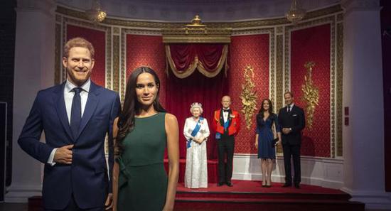 哈里王子與妻子梅根的蠟像于2018年5月在他們舉行婚禮前揭幕。展示王室成員時,哈利和梅根的蠟像此前與英國女王伊麗莎白二世及其丈夫菲利普親王、威廉王子及其妻子凱特·米德爾頓的蠟像相鄰。