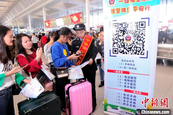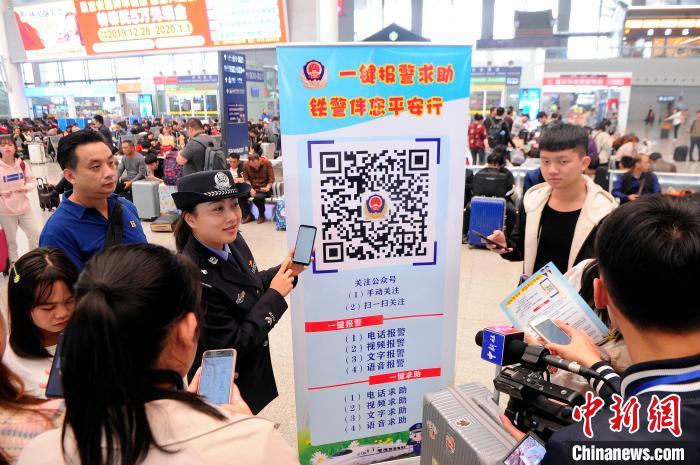 中新網南寧1月10日電 (蔣雪林 甘賢)1月10日是春運首日,南寧鐵路公安局微報警平臺上線儀式在南寧火車東站舉行。該平臺上線后,南寧鐵路公安局在其值乘的列車、轄區車站及鐵路沿線張貼二維碼,旅客微信掃碼即可實現電話、語音、文字、視頻4種方式報警或求助,旅客列車上報警可精準推送快速出警。
