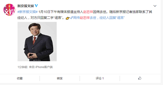 隨后,新京報記者打聽到趙忠祥被傳去世屬于謠言。