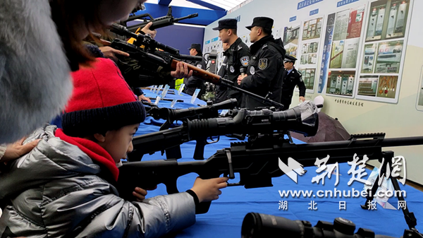 掃黑除惡,萬民關(guān)注。在掃黑除惡成果展示現(xiàn)場,武漢警方收繳的涉黑惡“槍、爆、刀”等涉案工具格外吸引群眾,讓人直觀地感受到涉黑涉惡勢力為害一方的危險(xiǎn)性。