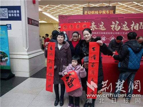 春運首日,為給旅客打造溫馨旅程,武昌、漢口、武漢等站同時啟動“寫春聯、送萬福、進萬家”活動,職工書法家現場揮毫潑墨為旅客寫春聯、送祝福。