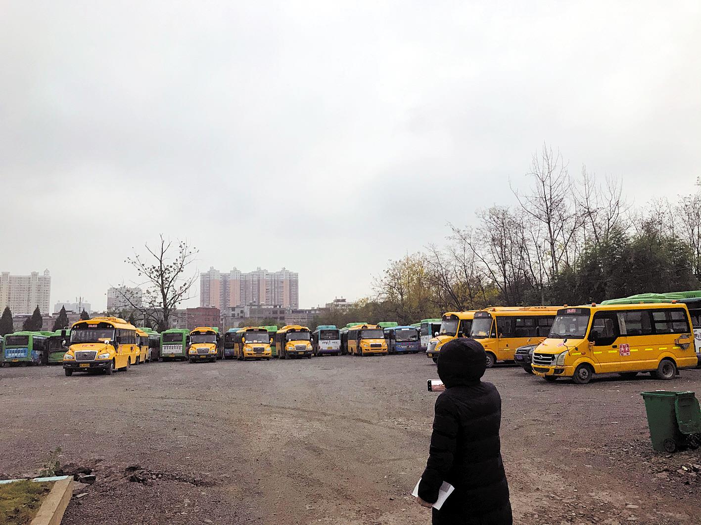 校車公司停車場。(湖北日報全媒記者 周鵬 攝)