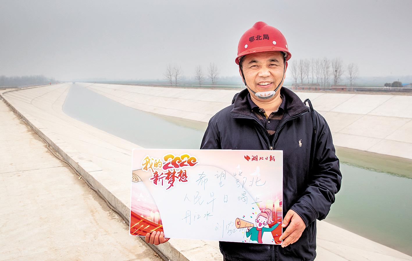 劉家明在鄂北水資源配置工程現(xiàn)場寫下了2020新夢想:“希望鄂北人民早日喝上丹江水。” (湖北日報全媒記者 柯皓 攝)