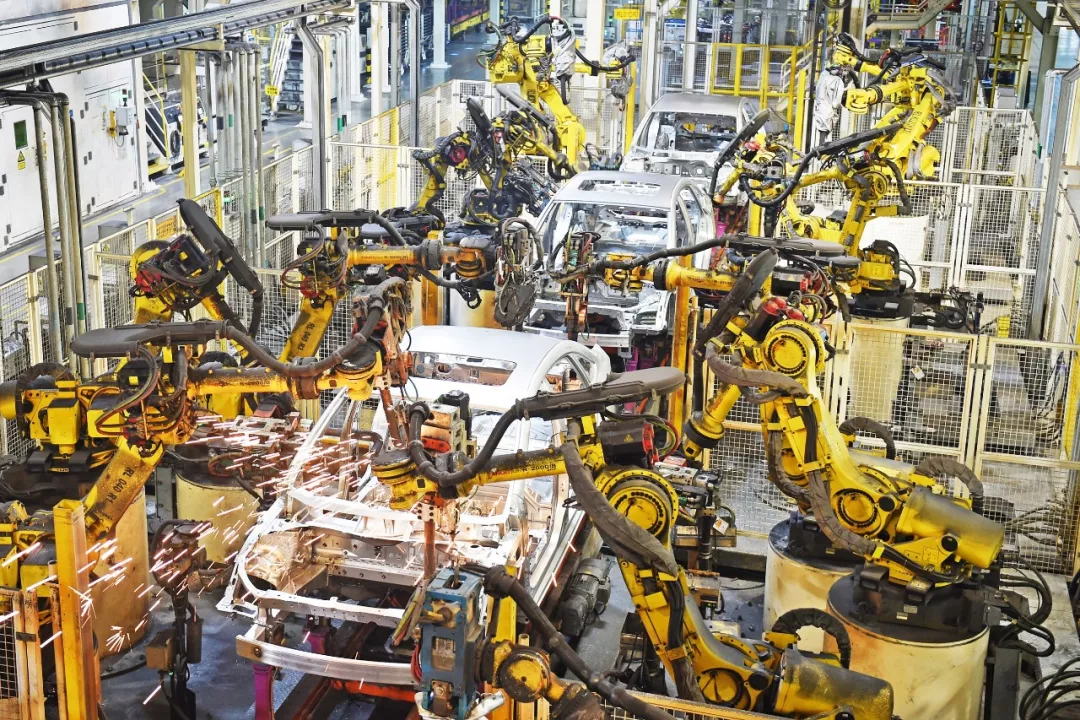 上汽通用武漢工廠焊接車間。(湖北日?qǐng)?bào)全媒記者 李溪 攝)