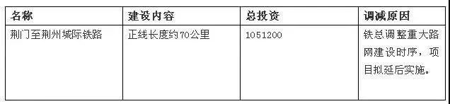 時間來到2018年8月14日,湖北省發改委發布了《省發展改革委關于下達2018年省級重點建設計劃中期調整的通知》,將荊荊高鐵從年初印發的2018年省級重點建設計劃中調出,調減原因:鐵總調整重大路網建設時序,項目擬延后實施。