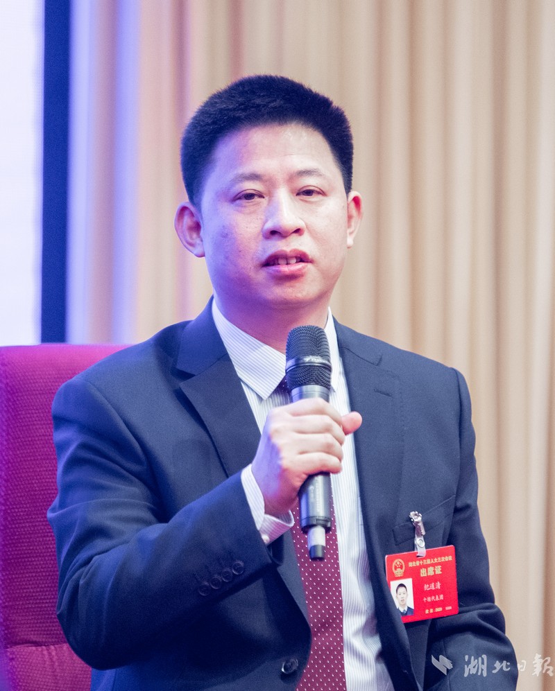 紀道清代表介紹房縣扶貧工作情況。(湖北日報全媒記者 柯皓 攝)