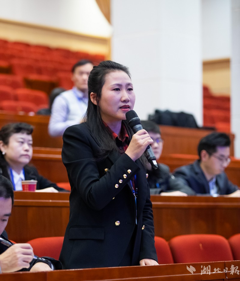 湖北日報全媒記者廖志慧現場提問。(湖北日報全媒記者 柯皓 攝)