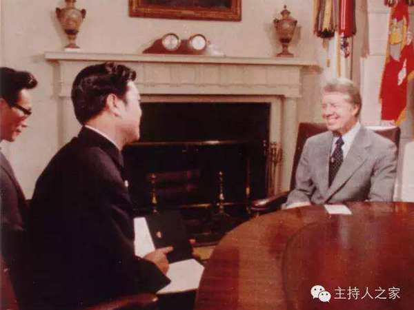 1979年,趙忠祥隨鄧小平訪美期間采訪過美國總統(tǒng)卡特,成為第一位進(jìn)入白宮采訪美國總統(tǒng)的中華人民共和國記者。