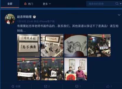 此前曾有多次關(guān)于趙忠祥去世的傳言。最近的一次,是在2020年1月10日。當(dāng)日,曾有多位蘭州博主在微博平臺上發(fā)布了趙忠祥代言隴上花牛蘋果的視頻。事后調(diào)查,這個視頻最早上傳時間為去年12月。1月10日,還有自稱趙忠祥助理的博主先后兩次發(fā)布博文稱(趙忠祥去世)“純屬謠言”、“ 趙忠祥老師最近在家 ”。而在最新的微博中,他則這樣寫道“有需要趙忠祥老師書畫作品的……聯(lián)系我們。其他渠道以保證不了是真品!請互相轉(zhuǎn)告……”