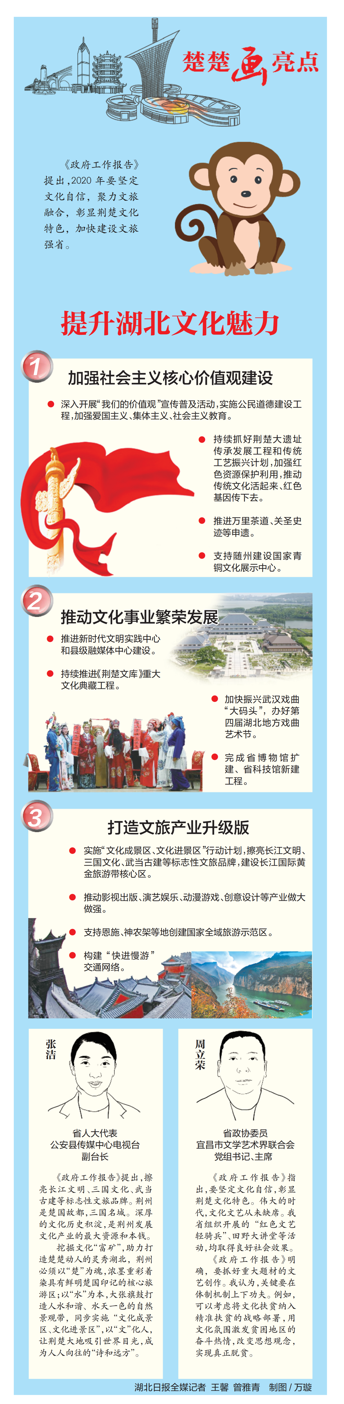 《政府工作報告》提出,2020年要堅定文化自信,聚力文旅融合,彰顯荊楚文化特色,加快建設文旅強省。
