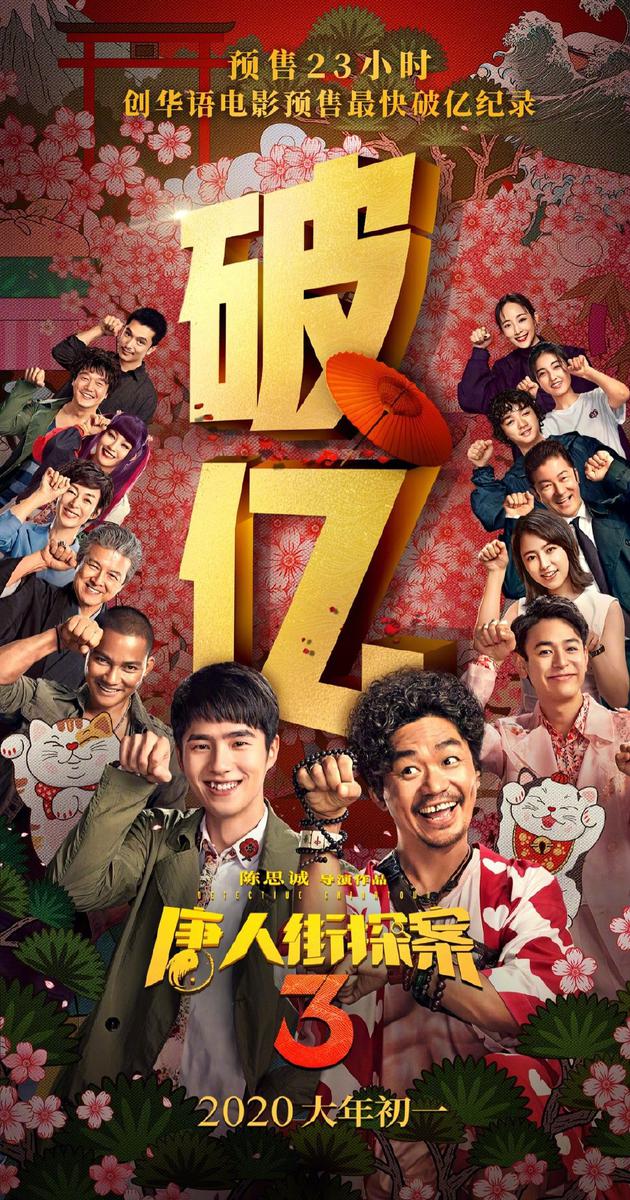 2020年1月18日,由王寶強(qiáng)、劉昊然等主演的電影《唐人街探案3》首日開啟預(yù)售,預(yù)售票房23小時(shí)破億。據(jù)悉,這也創(chuàng)造了華語電影預(yù)售最快破億紀(jì)錄,暫時(shí)領(lǐng)跑今年春節(jié)檔。