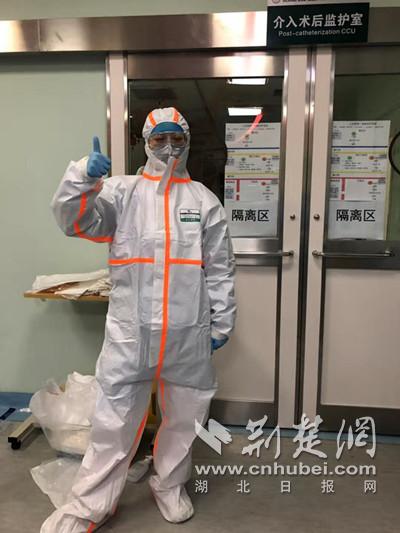 肖應建愛人沈燕身著防護服,面對鏡頭的她笑得很自信。(通訊員供圖)
