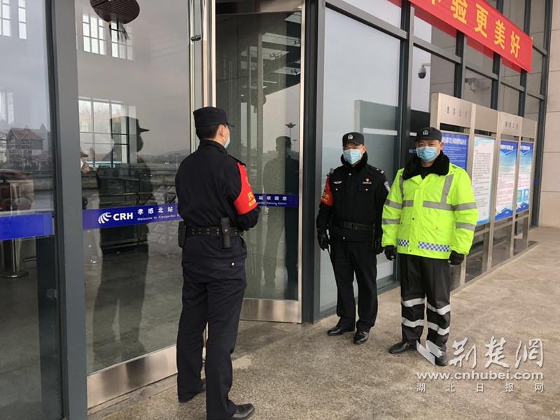 1月25日,離開孝感市轄區通道暫時關閉,所長肖應建帶領民警在進站口值守。(通訊員供圖)