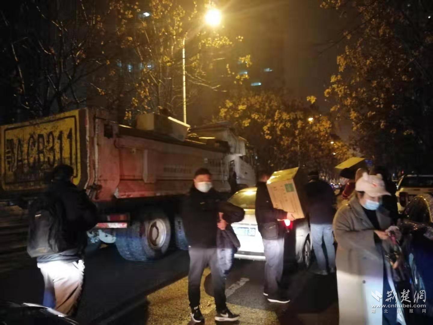 但當(dāng)大家開始行動(dòng)時(shí),卻被告知出不了城,時(shí)間已經(jīng)是夜里十點(diǎn)鐘,大家都很著急。就在這時(shí),有朋友把此事反映給了江岸區(qū)城管局,該局領(lǐng)導(dǎo)收到消息后很重視,很快派了兩個(gè)隊(duì)長對接我們。在城管局與政府相關(guān)部門溝通后,我們順利出城。