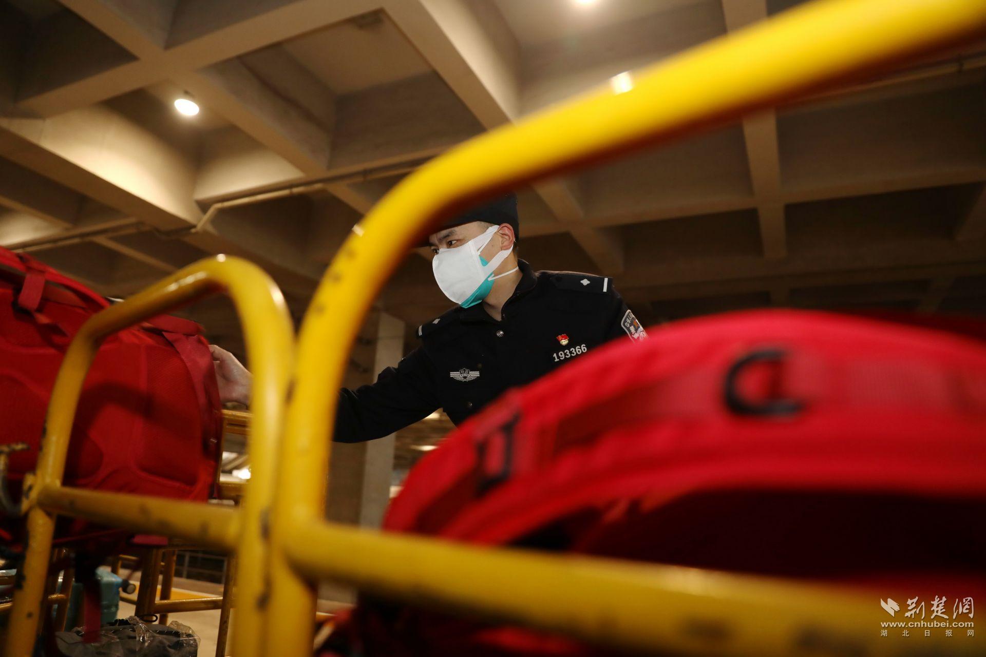 1月28日,潘紅波與漢口車站派出所同志一道協(xié)助保障疫情物資轉(zhuǎn)運(yùn)。鐘鵬宇 攝