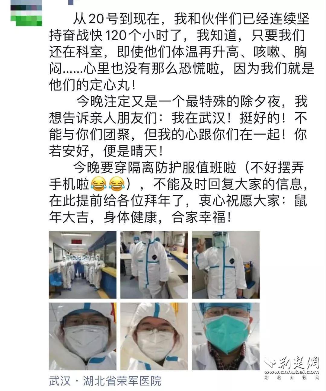 荊楚網客戶端—荊楚網消息(通訊員包曉霽、孫四海)連日來,新型冠狀病毒感染的肺炎疫情牽動人心,醫務人員奮不顧身的事跡感人肺腑。省榮軍醫院的全體職工在疫情防控的關鍵時刻挺身而出、沖鋒在前,因為有想守護的人,所以他們不畏艱辛,勇往直前。