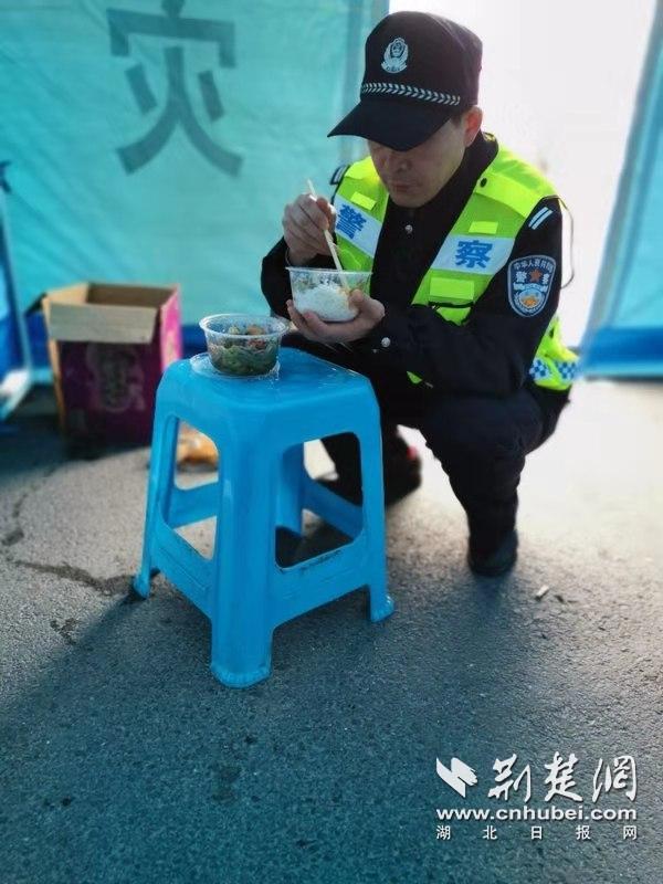 民警在執勤點就餐。(通訊員供圖)