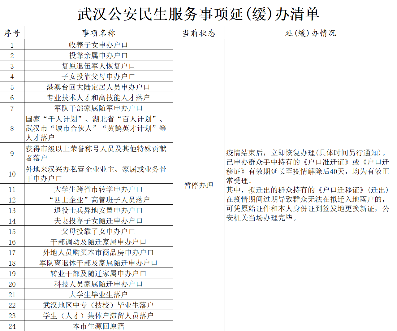 荊楚網客戶端—荊楚網消息(記者張揚)為減少人員流動,防止疫情擴散傳播,2月3日,武漢市公安局宣布:全市戶政、車駕管、出入境暫停窗口業務受理,恢復時間另行通知。同時,武漢警方向全市市民做出服務承諾:民生服務實行網上辦、超期辦、延期辦。