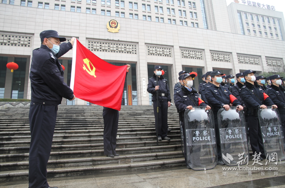 荊楚網客戶端—荊楚網消息(通訊員張恒)2月2日,咸寧市公安局大樓前舉行了一場簡短而莊嚴的儀式,市公安局“戰疫”黨員突擊隊正式成立。第一批80名戰“疫”黨員突擊隊隊員們再次莊嚴承諾:隨時準備為黨和人民犧牲一切,時刻準備沖鋒在疫情防控最前沿。