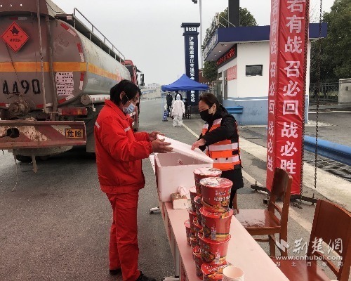 截至2月5日24時,楚天公司共為來自全國各地的128輛防疫物資運輸車免費送餐378份。