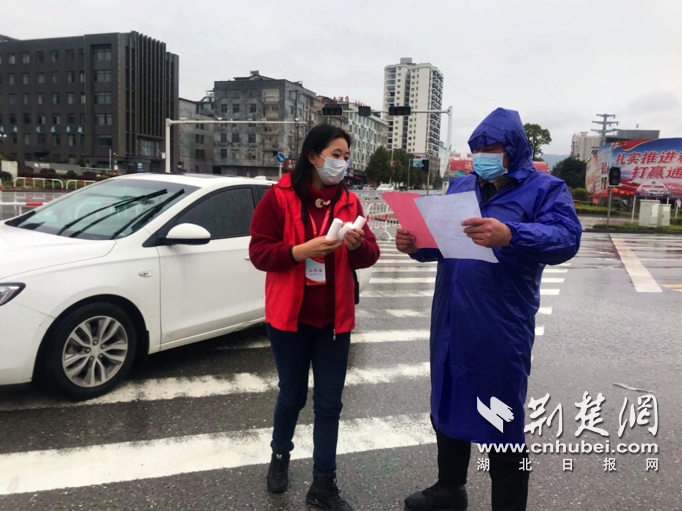 塘愛基金會成員向防疫一線人員發(fā)放防疫宣傳單和酒精噴劑。通訊員供圖