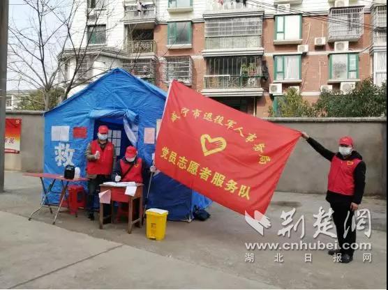 咸寧市退役軍人事務局黨員志愿者在社區(qū)開展疫情防控工作。通訊員供圖