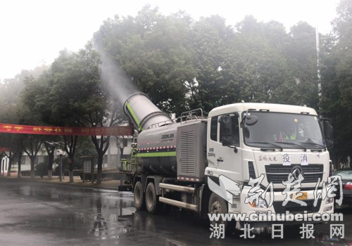 消毒車對漢川中職學校進行消殺。(通訊員供圖)