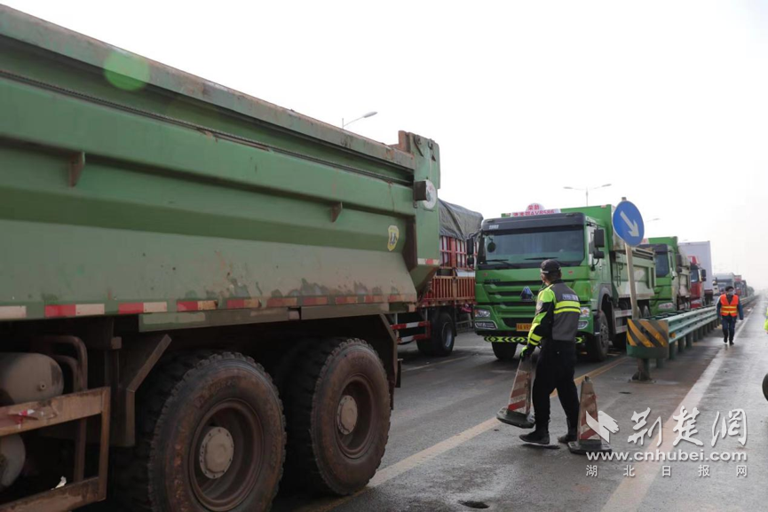 為了保障施工車輛進出有序,蔡甸交警在知音湖大道距離火神山醫院南北各三公里處設置了車輛分控點,將西側三股道開辟成工程車輛臨時停放區,東側三股車道用于通行。但實際工作中,有不少工作人員的小車進出,容易導致工程車進出不暢,為此蔡甸交警再次調整管理方式,在醫院南北各一公里處增設管控崗位,要求所有工作人員車輛停放至紡織療養院路口順向停放,協調各施工單位安排專門的擺渡車接送工作人員,保障工程車、物料運輸車的進出順暢。
