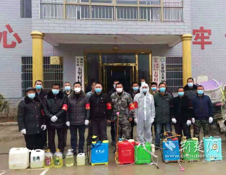 通城縣五里鎮五里村黨員志愿者消毒隊。通訊員供圖